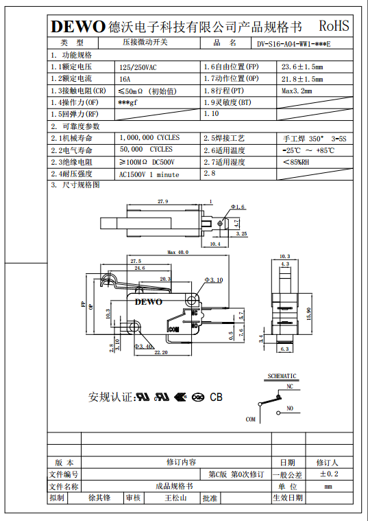 - DV型微動開關(guān)