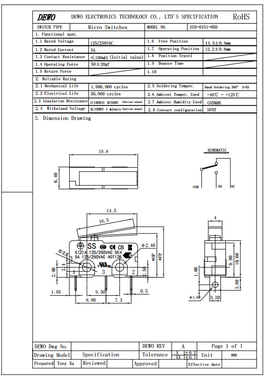 SS5-01N1-050微動開關(guān)