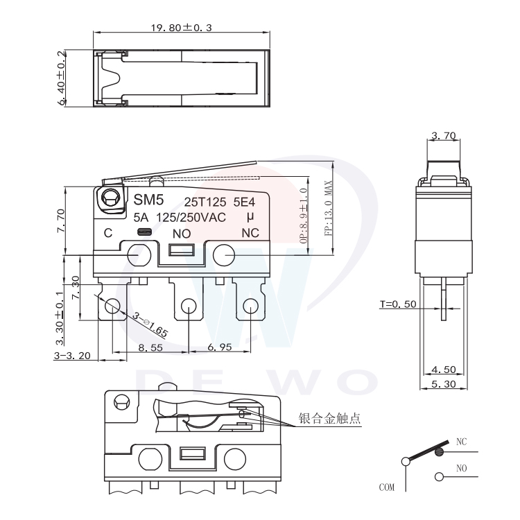 SM5-W01N-40-3彈片型微動(dòng)開關(guān)