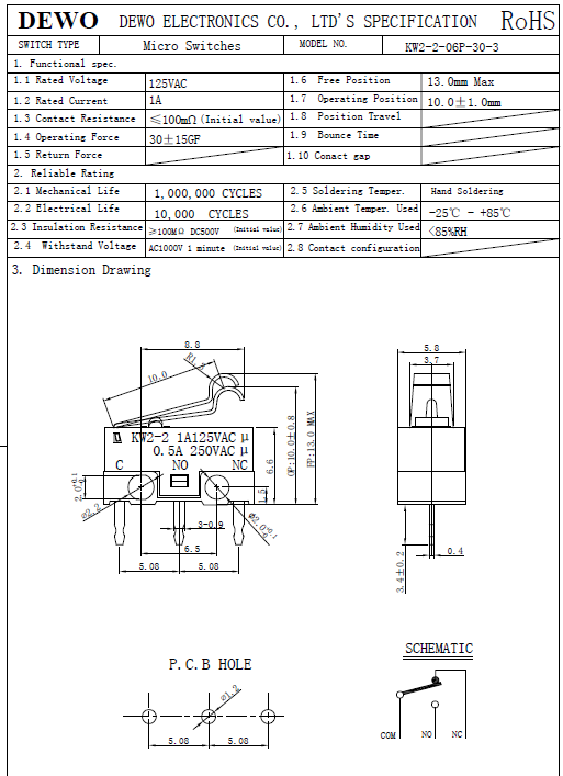 KW2-3-06P-30-5小型微動(dòng)開關(guān)