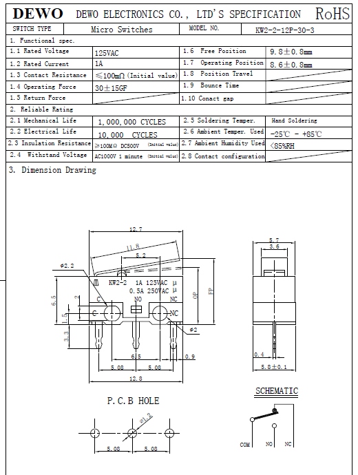 - DV型微動開關(guān)
