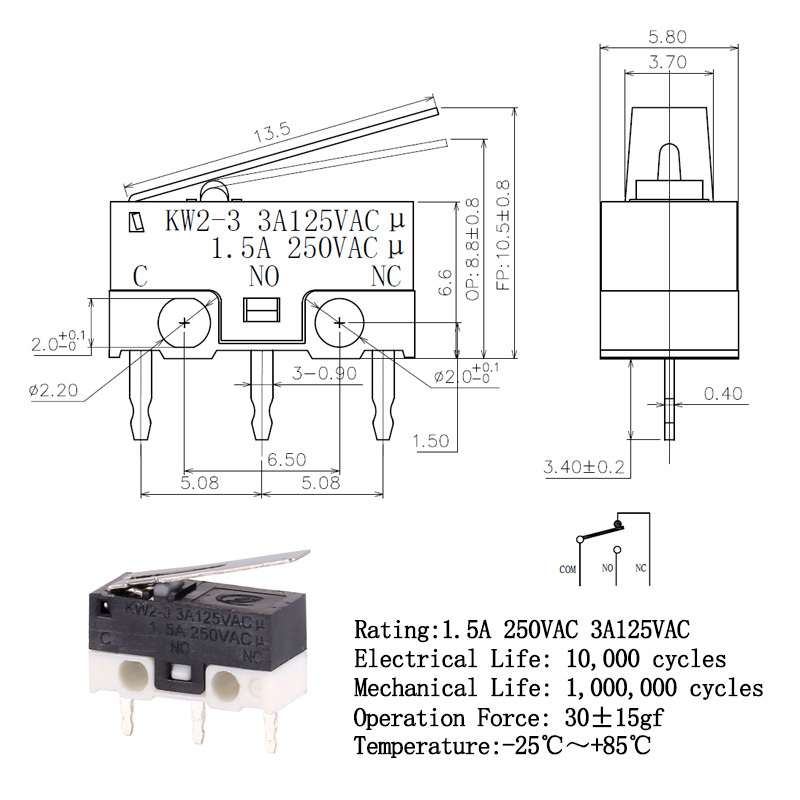 KW2-3-01P-30-5小型微動開關(guān)