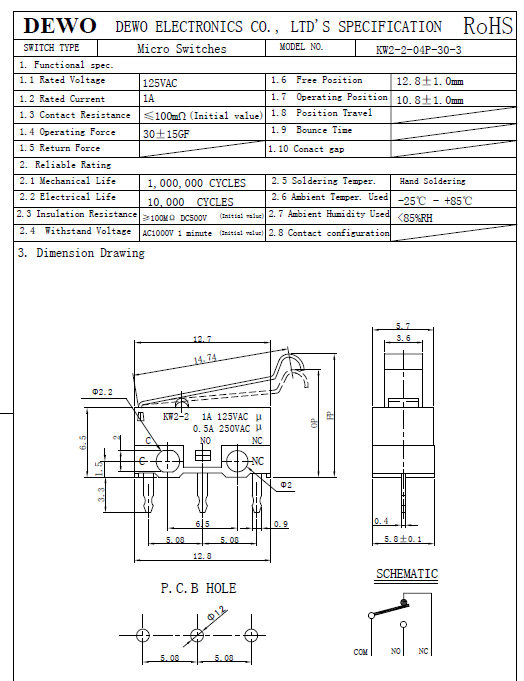KW2-3-04P-30-5小型微動(dòng)開關(guān)